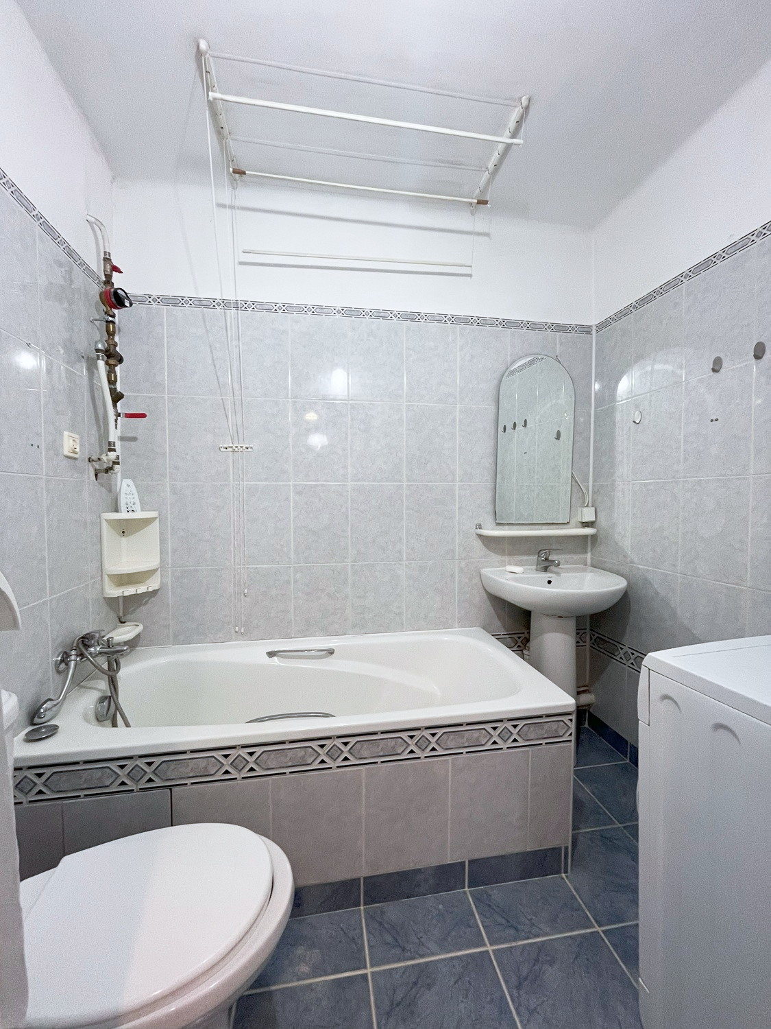 – w łazience: wanna, lustro, umywalka, kompakt wc, pralka.