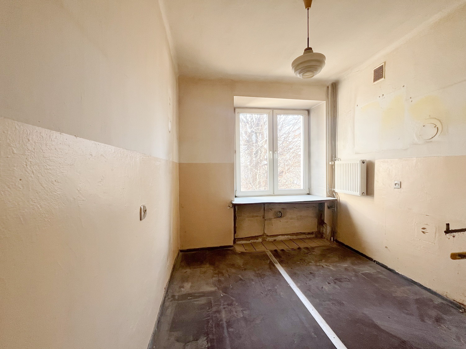 – mieszkanie do remontu: ściany nieszpachlowane, instalacje elektryczne i wod-kan do wymiany, podłogi do wycyklinowania.