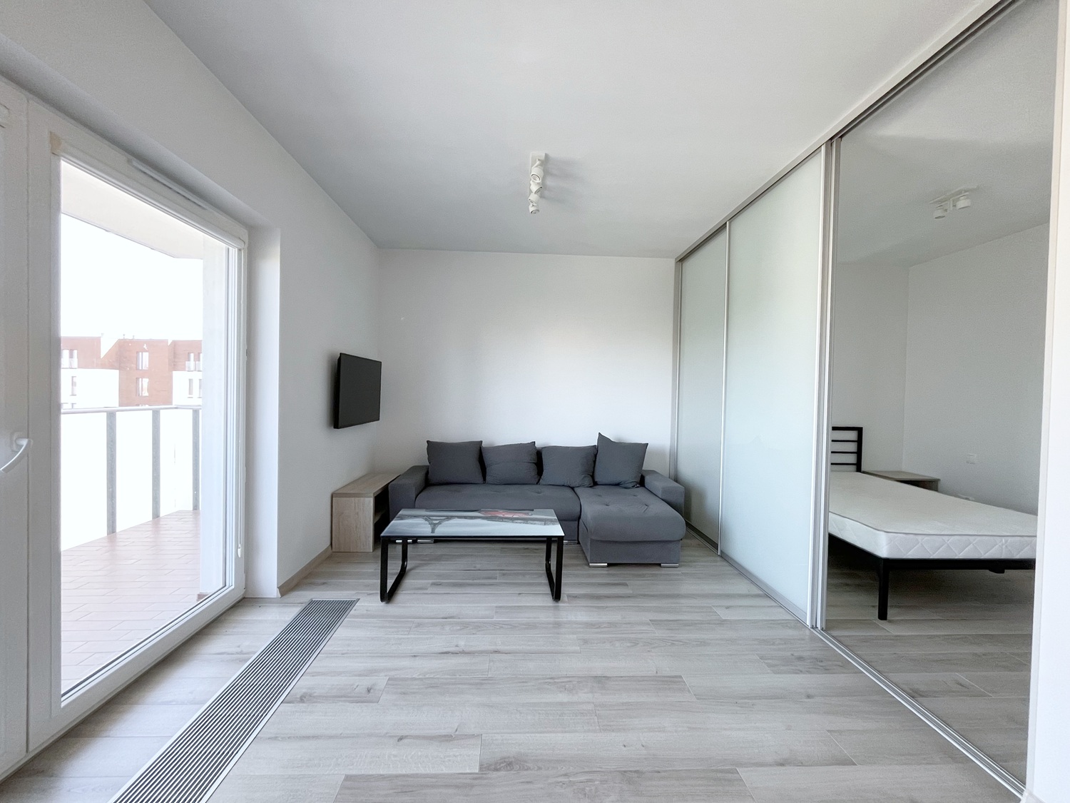 – salon z aneksem kuchennym i z tarasem (ok. 8 m2)