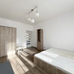 – na podłogach w pokojach i przedpokoju znajdują się panele, w kuchni – płytki,