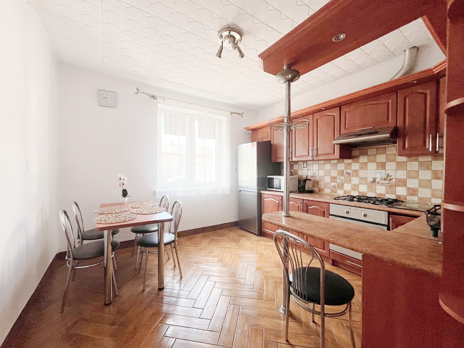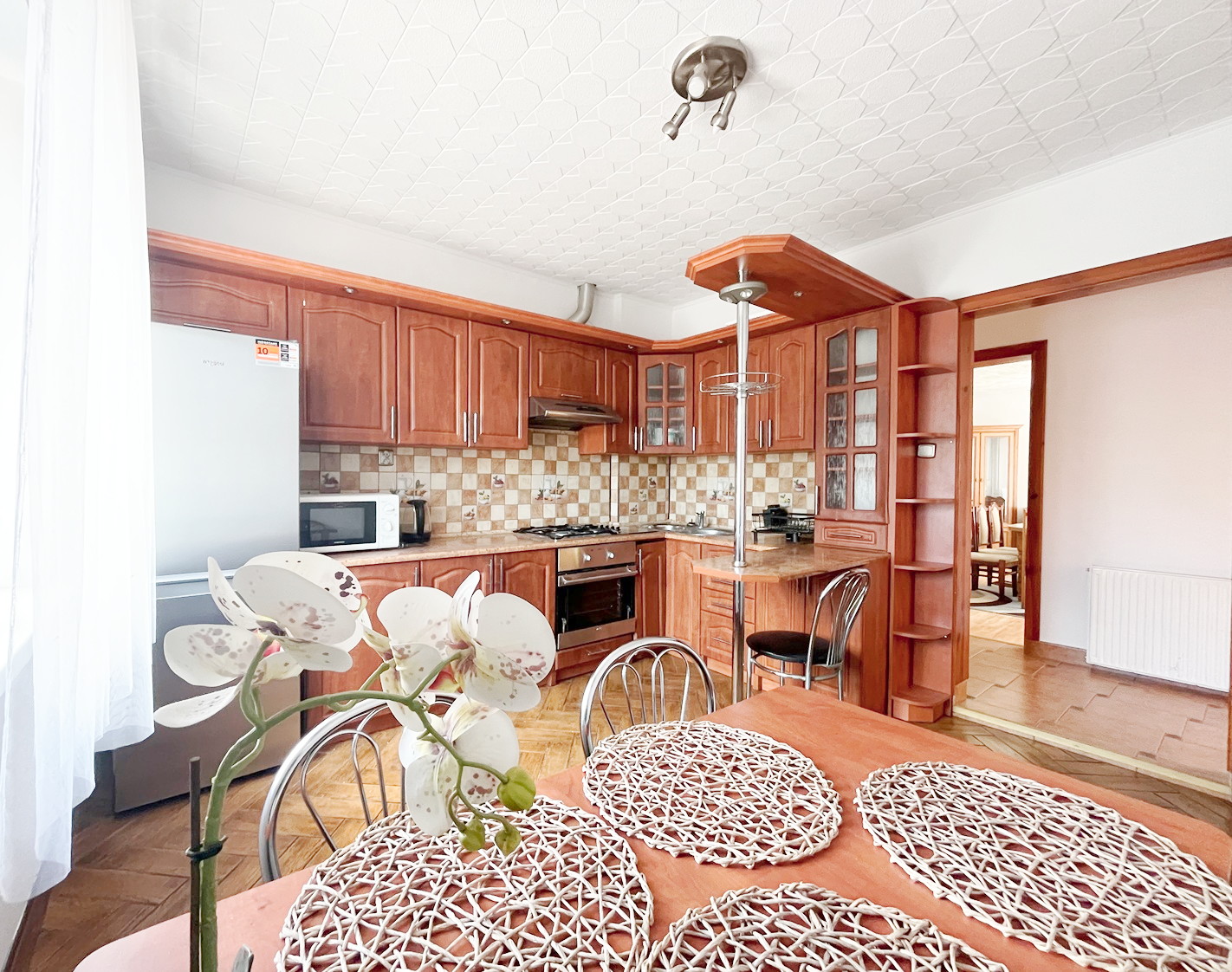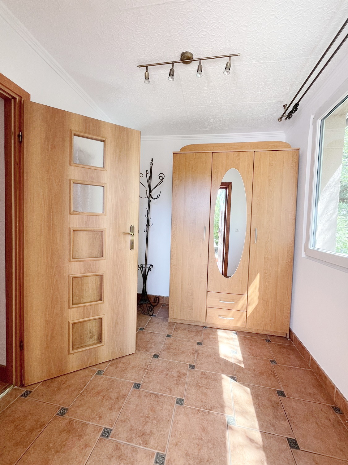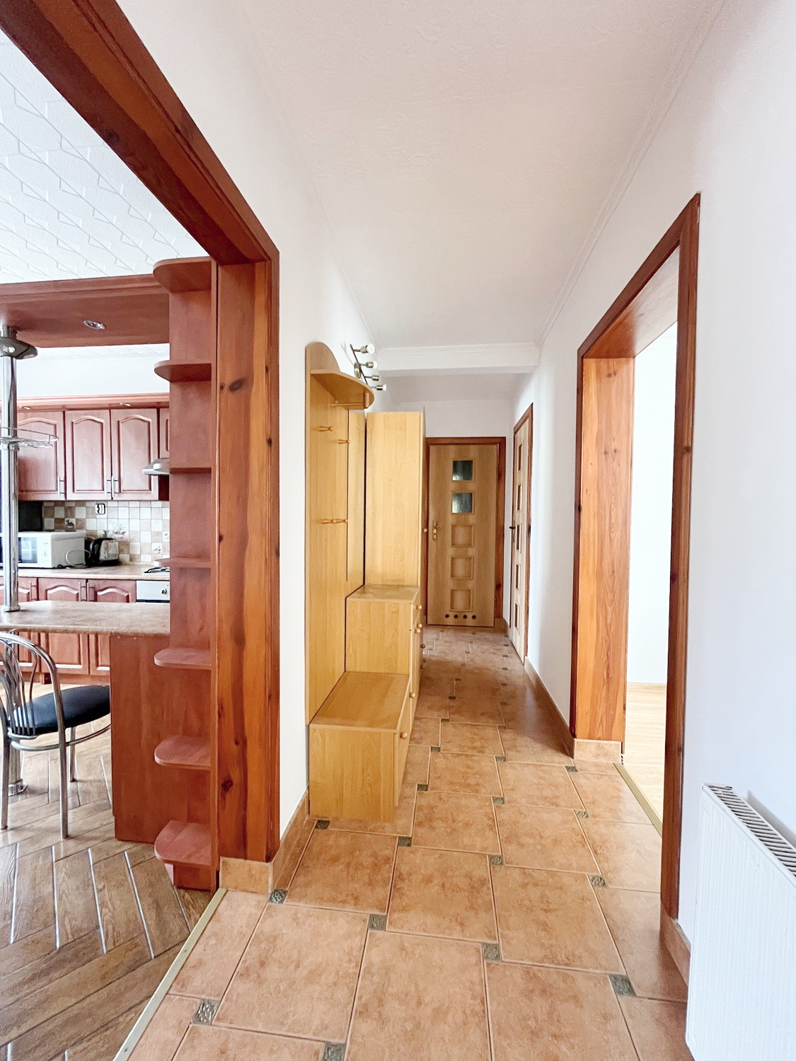 – na podłogach w pokojach– panele, w przedpokoju, wiatrołapie i kuchni – płytki,