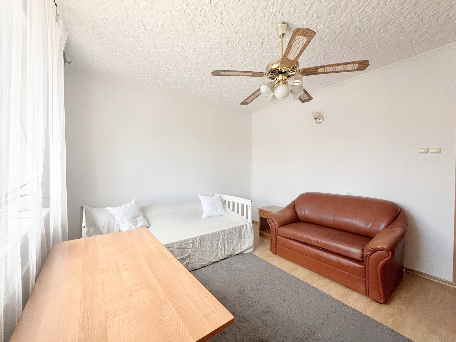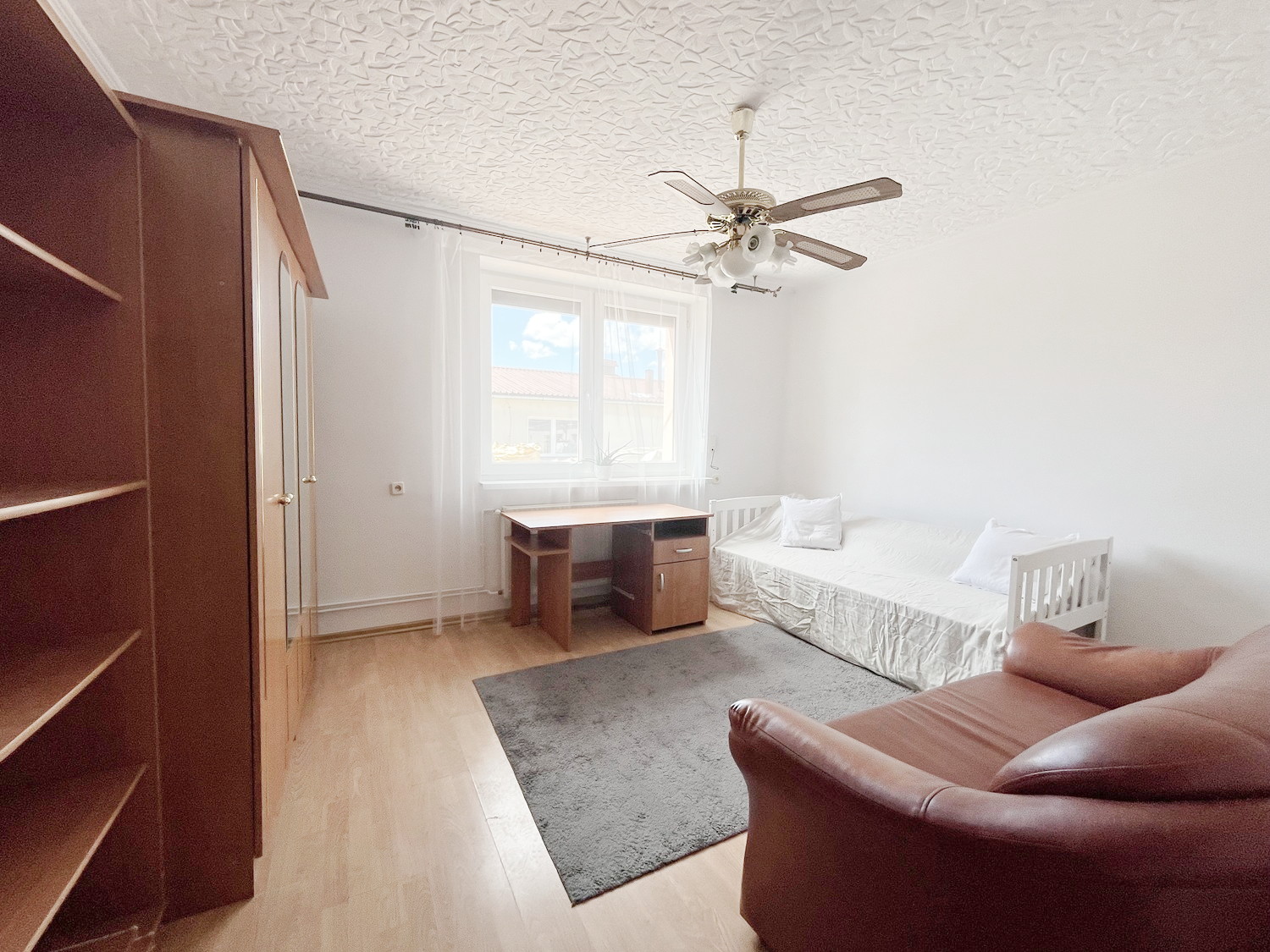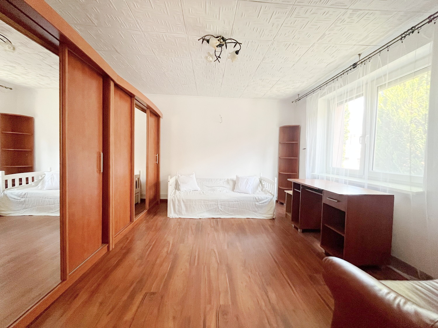 – meble: duże szafy, meblościanka, stół + 10 krzeseł, 2 x pojedyncze łóżko, 2 biurka, 2 małe kanapy.