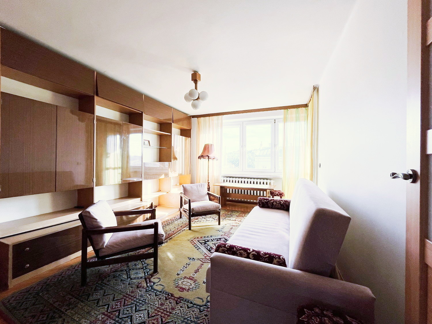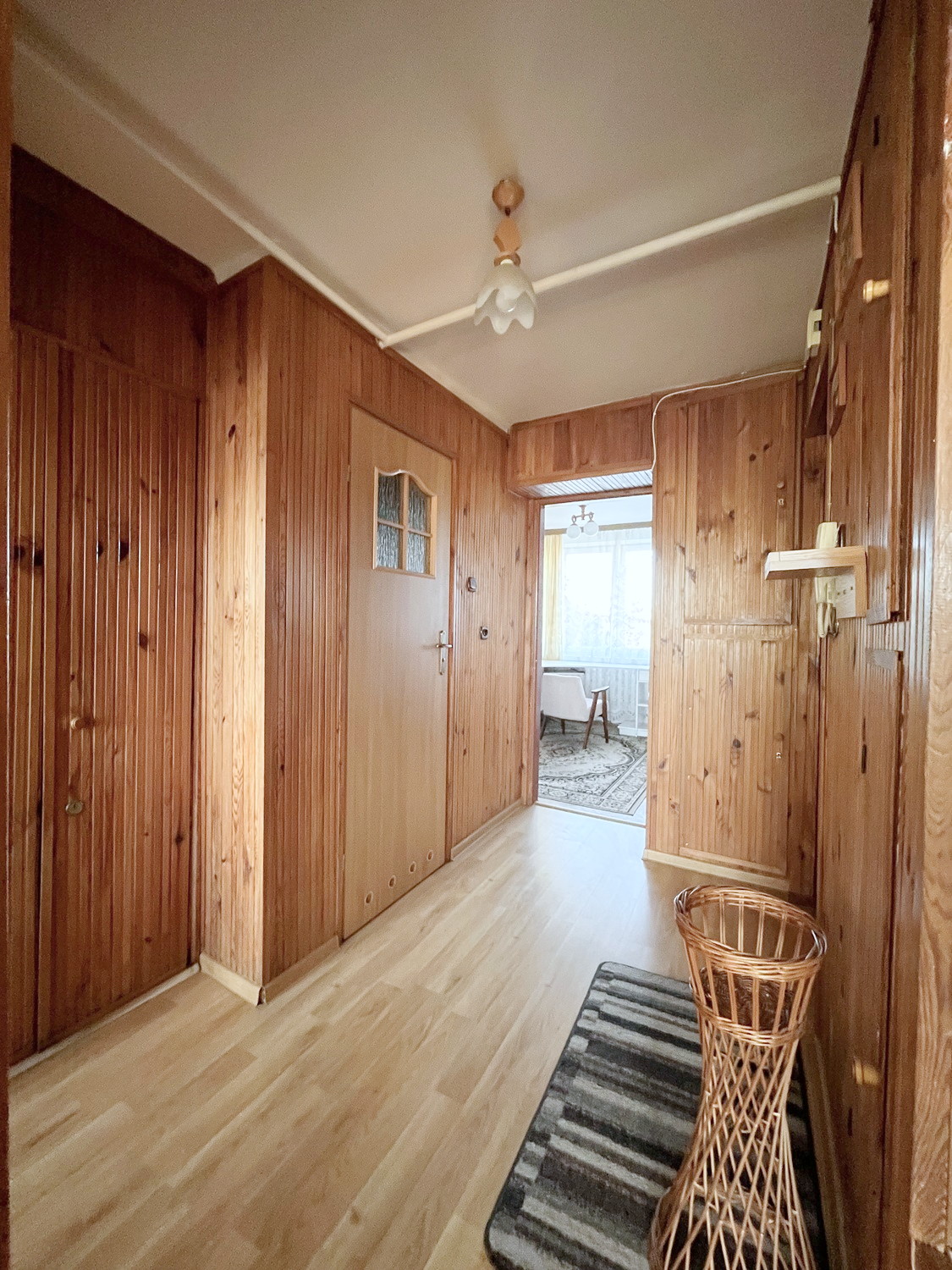 Mieszkanie ma powierzchnię 48 m2 i mieści się na 4 piętrze 4-piętrowego bloku z cegły z 1965 roku.