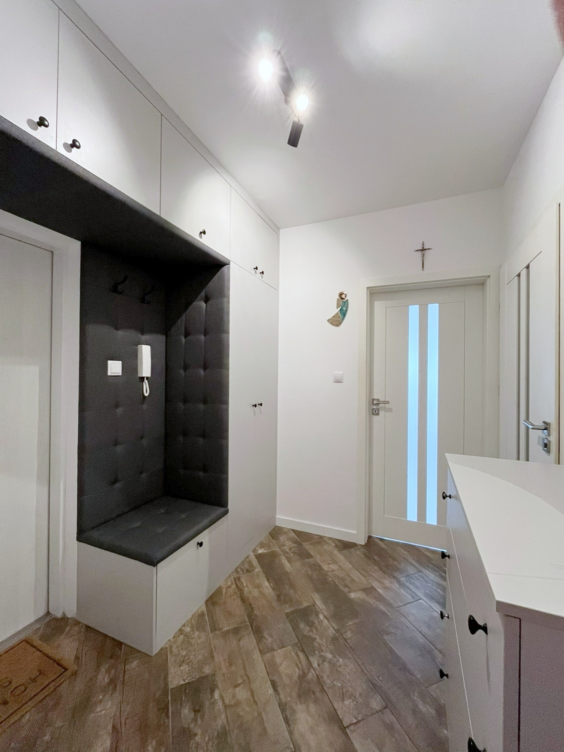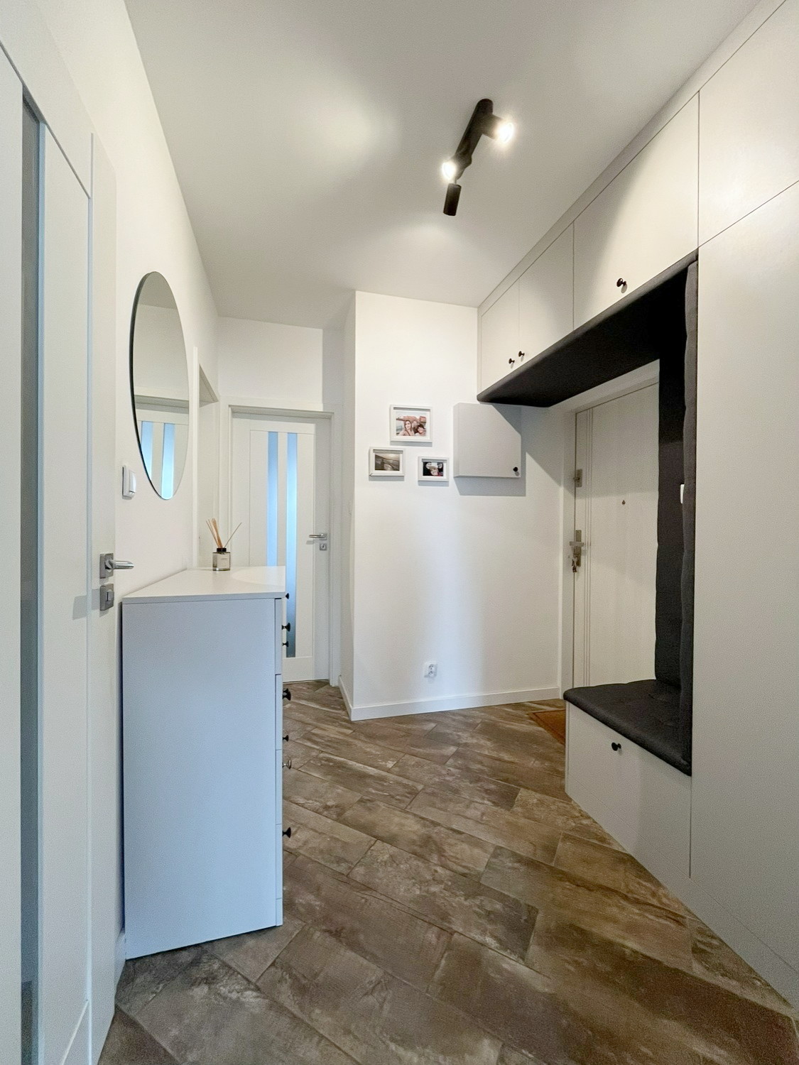 – w przedpokoju: szafa w zabudowie, komoda, lustro.